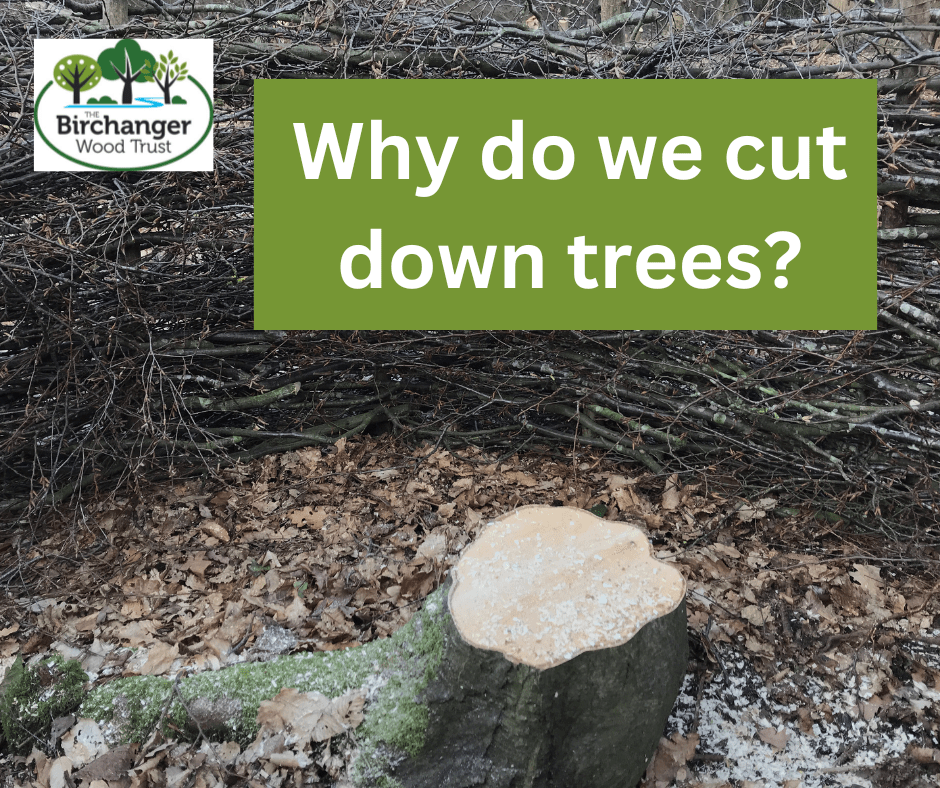 - As part of our coppicing plan. This is vital part of the management of the woodland to maintain and improve its biodiversity. It looks severe but is actually essential! And it can in fact prolong the life of the trees we coppice. You can read more here: https://birchangerwoodtrust.org/2023/01/26/our-new-coppicing-plan/