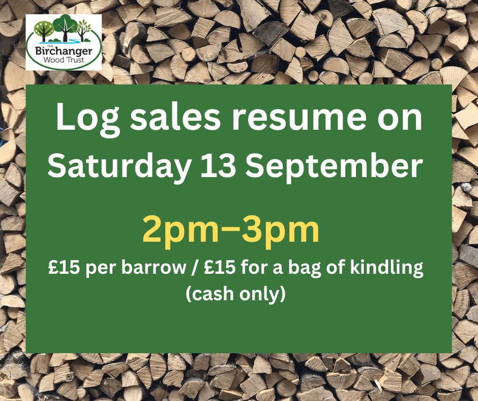 Our log sales will resume every Saturday from Saturday 13th September, between 2pm and 3pm. We sell seasoned firewood by the barrow-load, at £15 per barrow. We also have handmade kindling at £15 for a large bag.