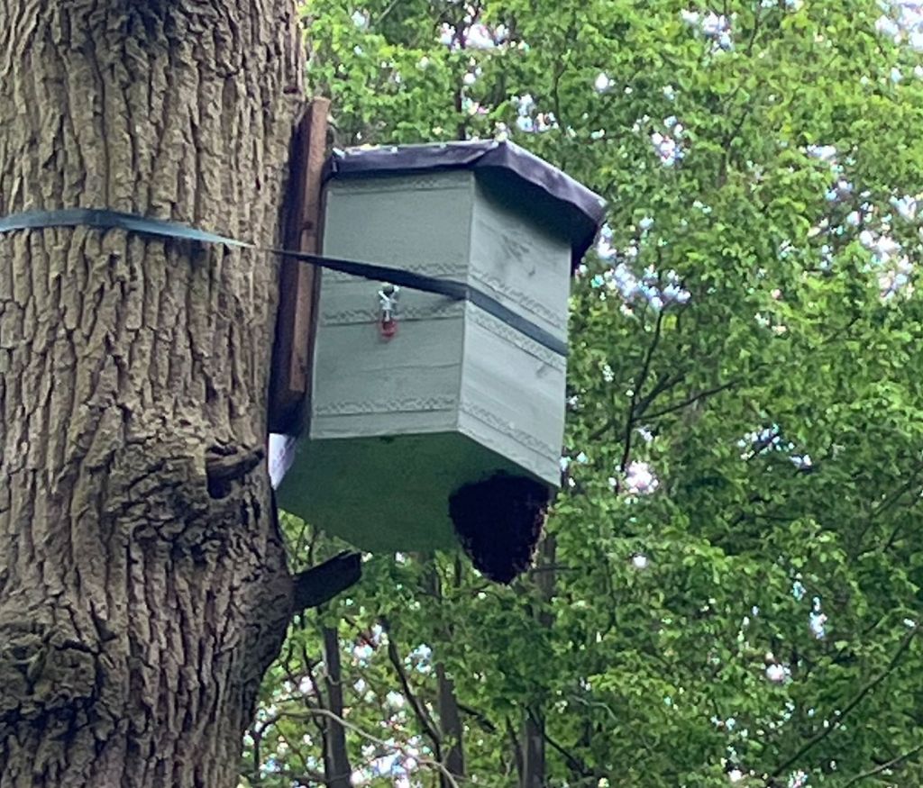 The bee boxes are already doing a fantastic job to support honeybees in our area, which are facing the dual threats of climate change and habitat loss. The boxes are important because they provide a home to native honeybee colonies when they swarm, which they do when their colony outgrows its home. The more we can do to support them, the better, because a healthy bee population supports biodiversity – and crop production, they do a vital job pollinating plants.